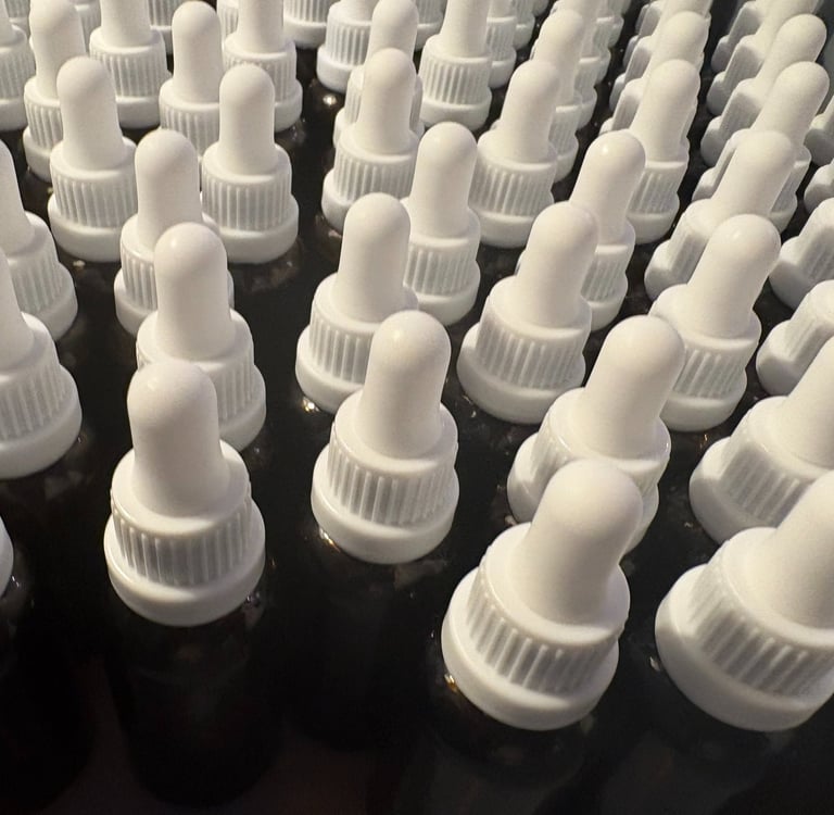 Glas statt Plastik. Kleine Serien statt Standardverpackungen. Manuelle Abfüllung statt industrieller Linien. Etiketten, die haften, schützen und lesbar bleiben.